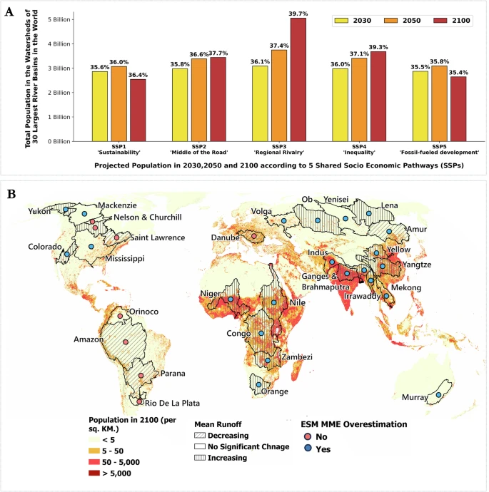 Earth system models inform water policy and interventions, but knowledge gaps in hydrologic representations limit the credibility of projections and impacts assessments. The literature does not provide conclusive evidence that incorporating higher resolutions, comprehensive process models, and latest parameterization schemes, will result in improvements. We compare hydroclimate representations and runoff projections across two generations of Coupled Modeling Intercomparison Project (CMIP) models, specifically, CMIP5 and CMIP6, with gridded runoff from Global Runoff Reconstruction (GRUN) and ECMWF Reanalysis V5 (ERA5) as benchmarks. Our results show that systematic embedding of the best available process models and parameterizations, together with finer resolutions, improve runoff projections with uncertainty characterizations in 30 of the largest rivers worldwide in a mechanistically explainable manner. The more skillful CMIP6 models suggest that, following the mid-range SSP370 emissions scenario, 40% of the rivers will exhibit decreased runoff by 2100, impacting 850 million people.
